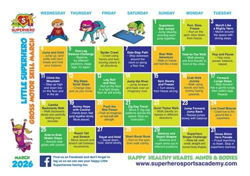 FREE Little Superhero Gross Motor Skills March 31-Day Early Years Movement Calendar